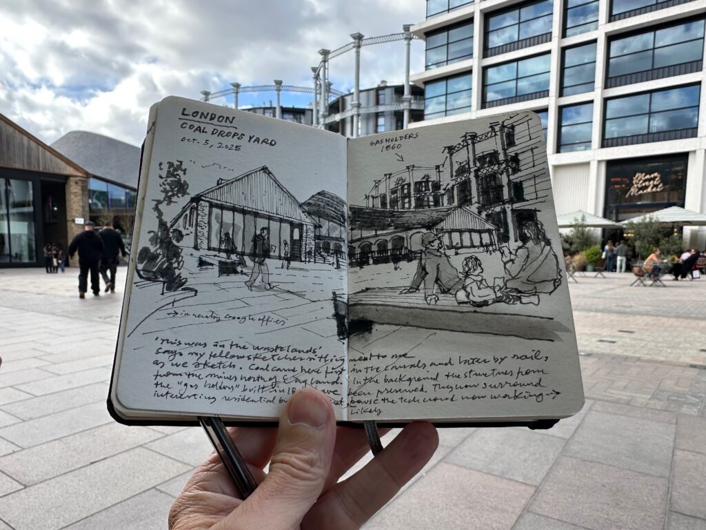 I really enjoyed discovering this part of London today with @urbansketcherslondon. Coal Drops Yard (@coaldropsyard) was a hub where coal from mines in North England was