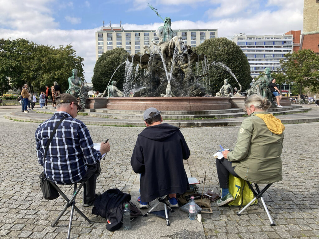 On Sept. 19, I gave an urban sketching tour/demo at the Neptune Fountain near Alexanderplatz in Berlin. This striking baroque-revival fountain is one of the