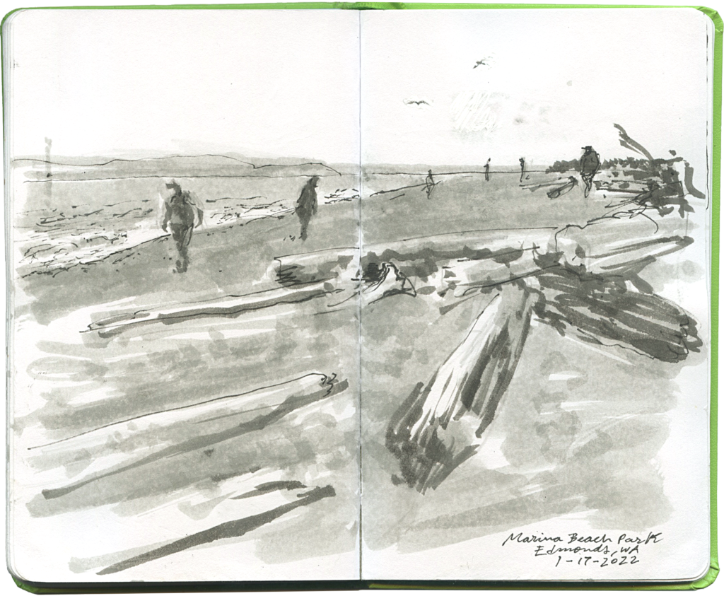 June 13, 2021. This morning the @uskseattle group gathered to sketch in person for the first time in 16 months. It was a typical June-gloomy day of