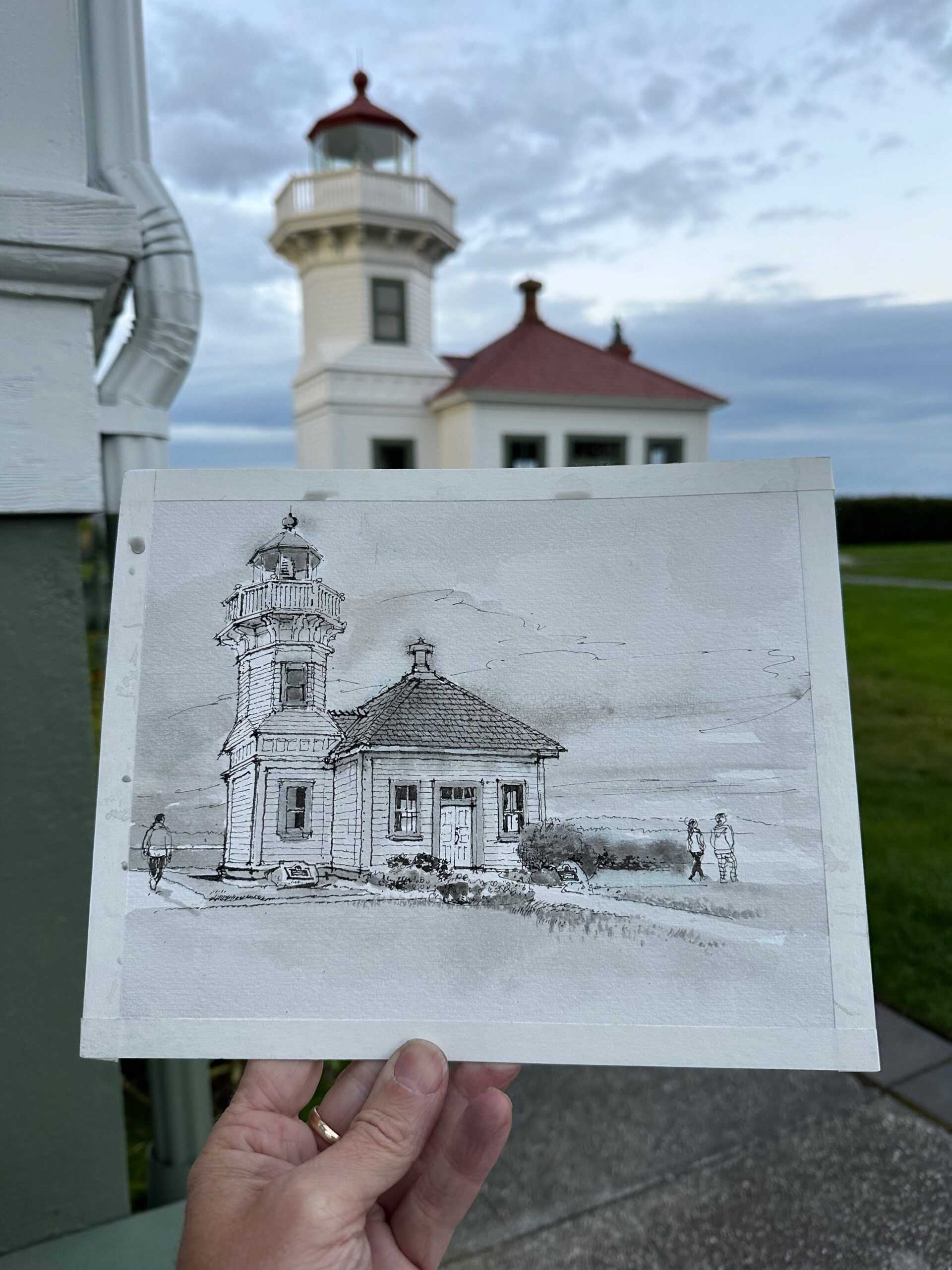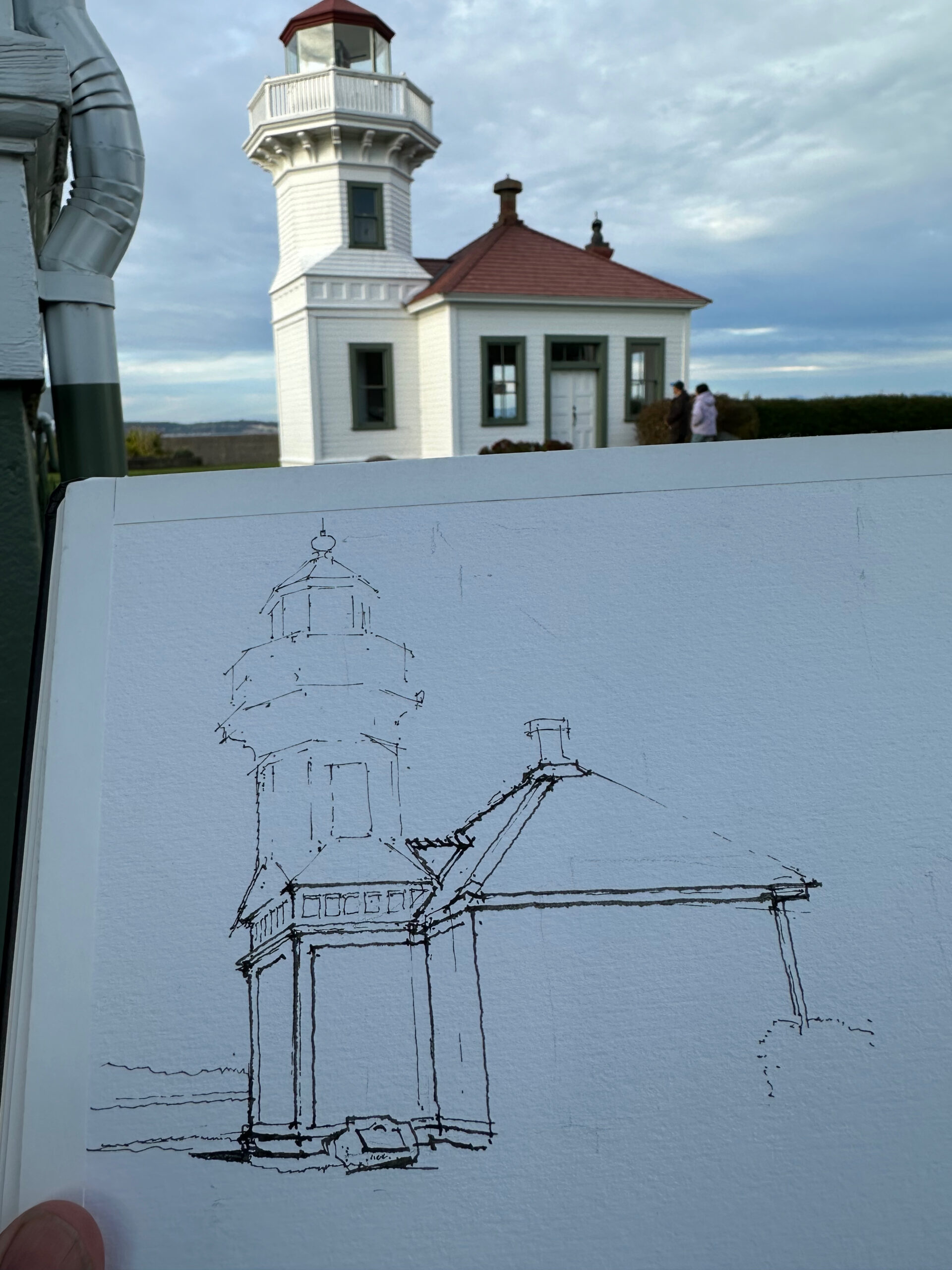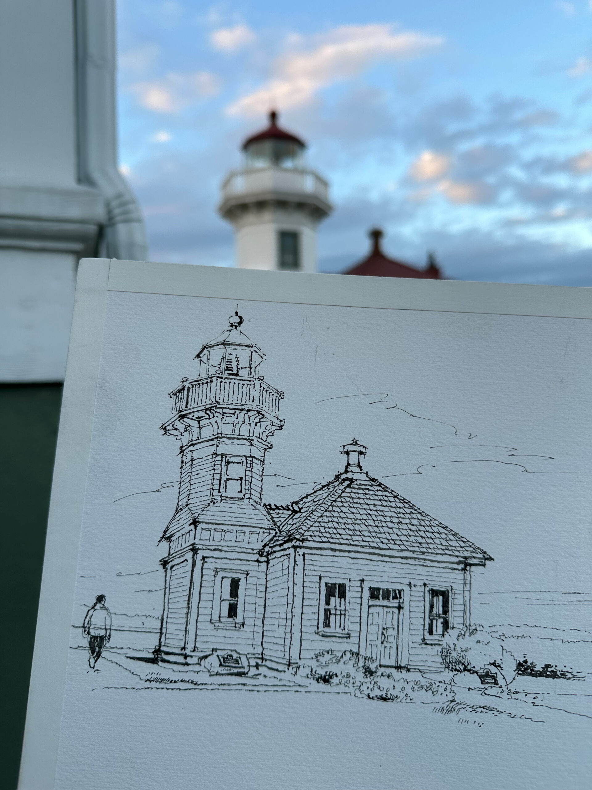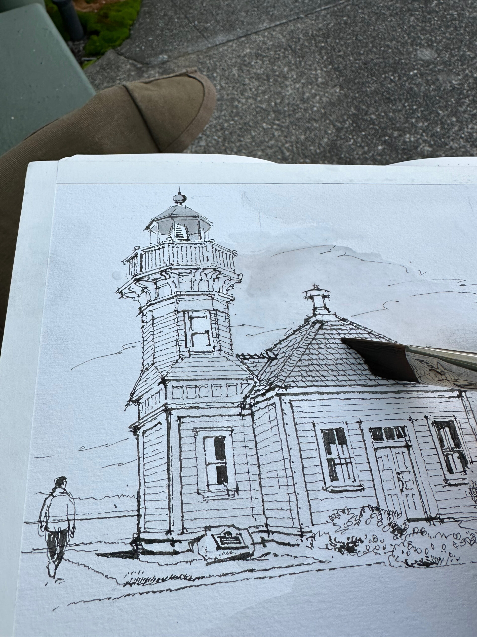 8 x 10 inches. Pen and ink wash on 300 lb soft pressed Fabriano Artistico extra white watercolor paper.