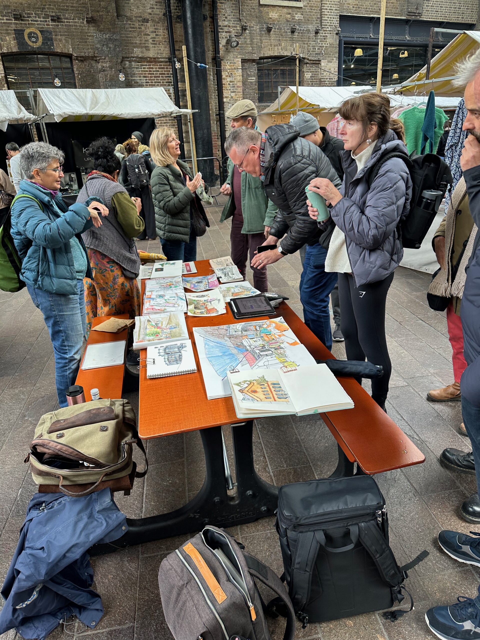 I really enjoyed discovering this part of London today with @urbansketcherslondon. Coal Drops Yard (@coaldropsyard) was a hub where coal from mines in North England was delivered through canals and by rail in the 19th century. The site eventually fell into decay and became a wasteland, a place known for prostitution, drugs and illegal clubs. Since its revitalization in the past decade, it has become a cool shopping and dining destination where any sketcher would enjoy bringing their sketchbook. #urbansketchers #usklondon#sketchbook #pocketsketchbook